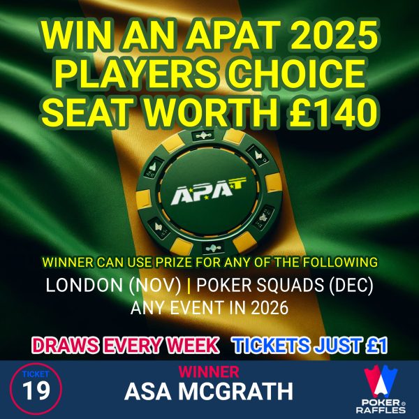 Ticket holders in this raffle will be competing to win a Seat at any £140 main event in 2025, or any similarly priced APAT National Amateur Poker Championship event in 2025.