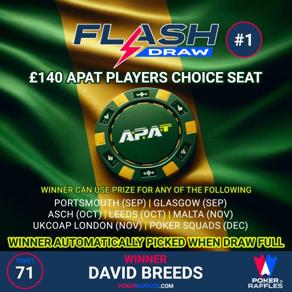 Ticket holders in this raffle will be competing to win a Seat at any £140 main event in 2025, or any similarly priced APAT National Amateur Poker Championship event in 2025.